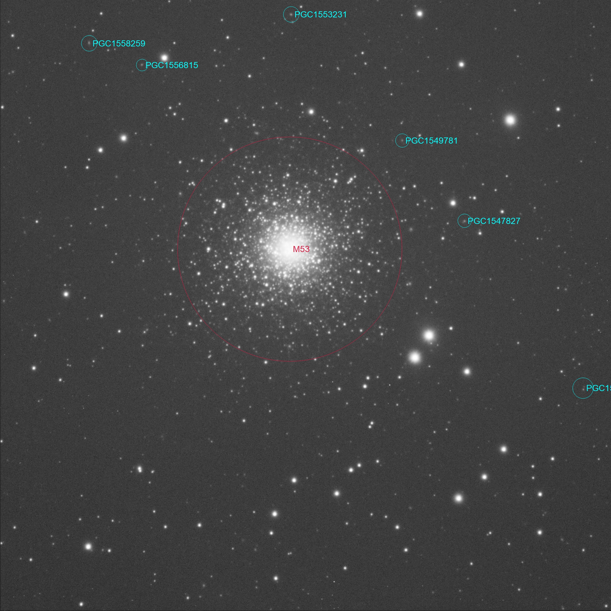 Messier 53 avec la Lunette 80ED + réducteur x0.6 + ZWO 676 mm + IR Cut