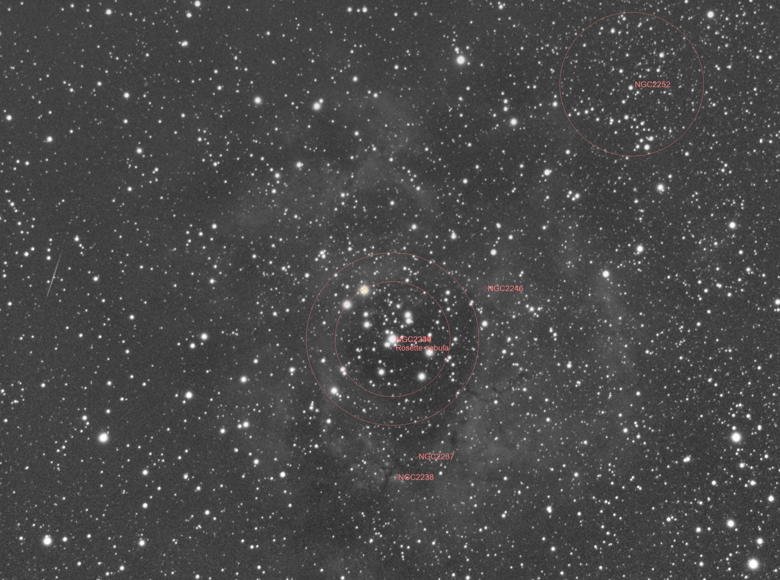 NGC 2239 le 31 / 12 /2025 en NB avec la 72ED + réducteur de focale 0.60x + ATIK 314L